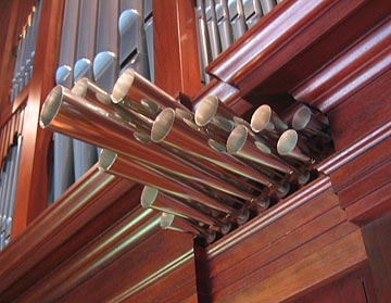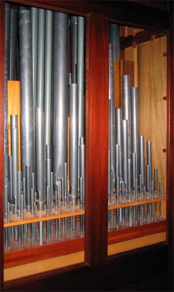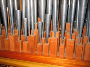 The principals and flutes outside of the mixtures are made of a 98% lead alloy, the mixtures of 28% tin, and the strings and chamade are of 77% tin.